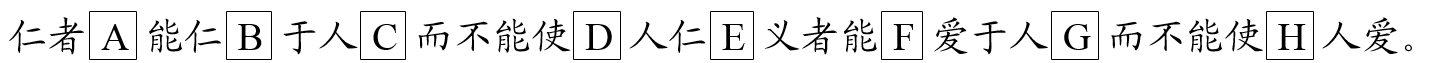 “仁者能仁于人”和“义者能爱于人”句式对称,“而不能使人仁”与“而不能使人爱”句式对称,各自独立成句,故分别在C、E、G三处断开。